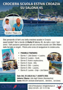 ⛵ CROAZIA VELA & APNEA 🤿 Dall’11 al 18 Luglio a bordo di Gigi! Unisci il respiro al vento tra isole da sogno e fondali cristallini. Posti limitati! 🌊 Info: info@oltremare.it – 0532 20 16 78 – 331 19 19 106