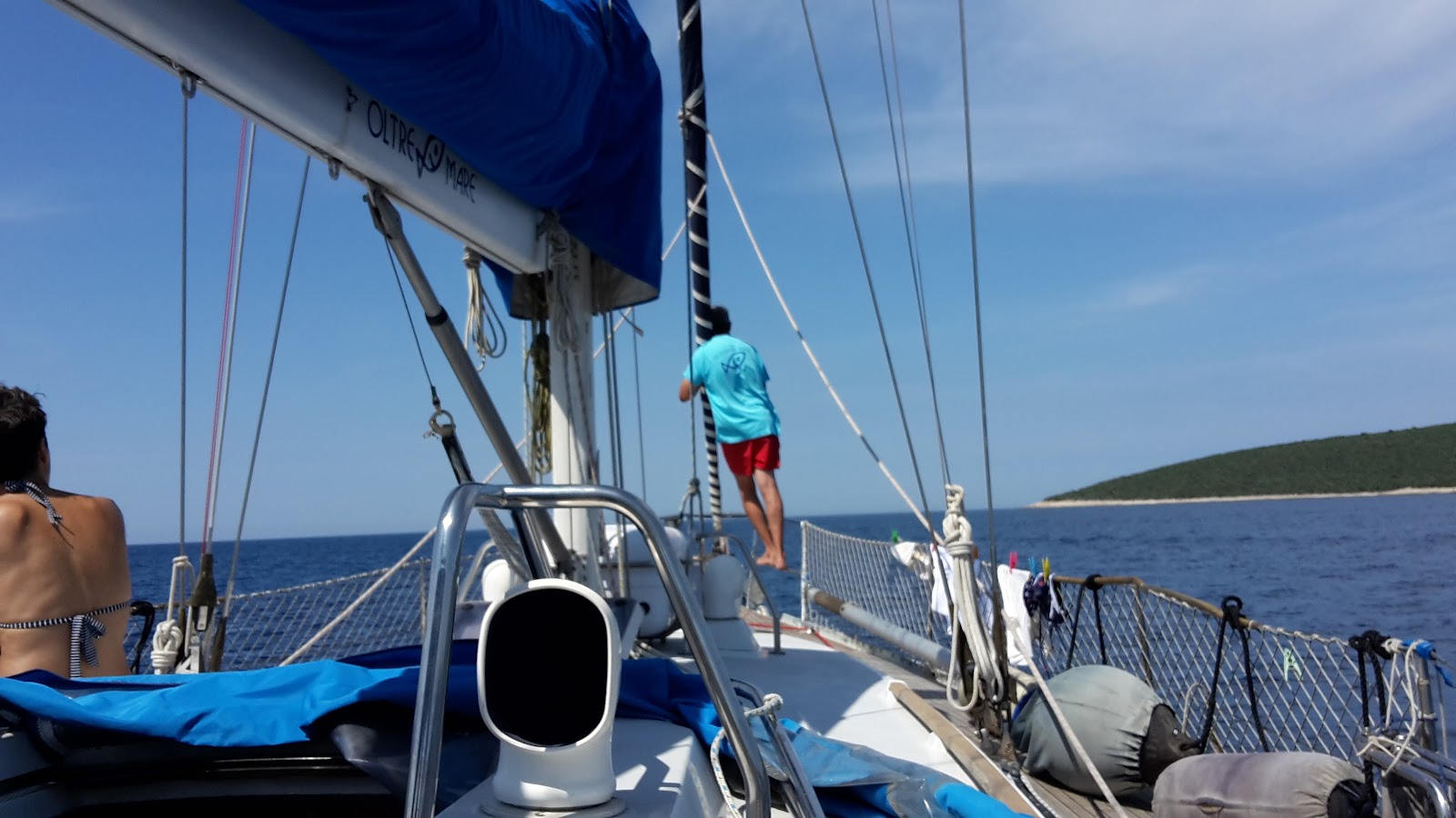 ecco arriva la bonaccia dopo giorni di vento ci dirigiamo a Olib a motore nella calma piatta , posto veramente metafisico, cenetta in uno dei bei ristorantini sulla spiaggia